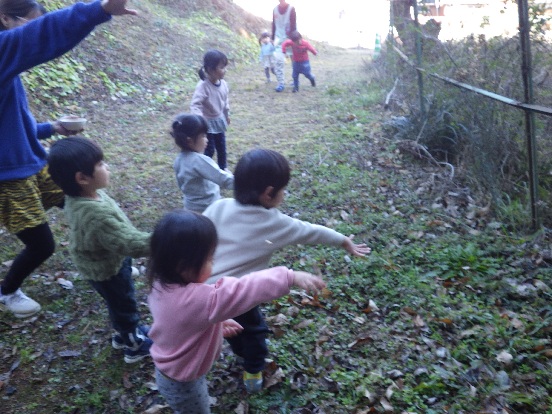 最後は、裏の山や川にの豆まきしました。