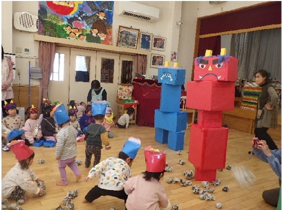 節分の日、保育園では豆まきを行いました。